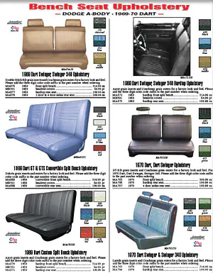 Upholstery, door panels, replacement carpet, floor mats, seat belts as well as other hard to source components like dash pads, steering wheels, gauges, and consoles are often in stock, waiting for your order.
