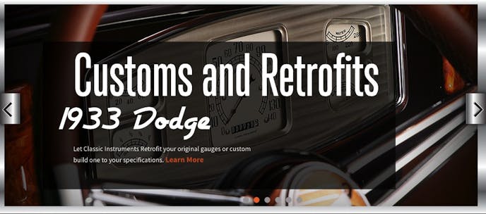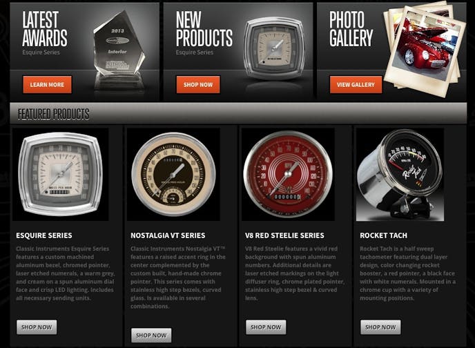 Site navigation has been split up in tabs at the top of Classic Instruments’ homepage. A new rotator will give visitors an at-a-glance digest of the company’s biggest and buzz worthy releases.