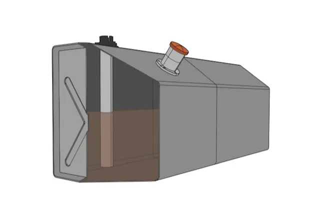 Fuel enters tube from a small hole at the bottom. There is a vent hole in top of the tube that allows tube to fill. This design makes the tube fill and empty slowly, minimizing the effects of fuel sloshing in the tank which normally would cause a fuel gauge needle to sweep back and forth.