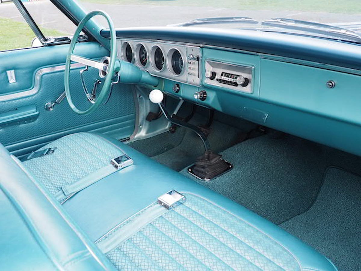 Except for the added side view mirror and front seat belts (which are date-correct originals from another car) this Belvedere is close to what it was on Nov 15, 1963 when it was assembled at the Lynch Road, Michigan plant. It was also ordered with A833 4-speed with Hurst shifter, heavy-duty 11-inch police brakes, front sway bar, heavy-duty rear leaf springs (like those on the Super Stocks), AM radio, 7.50 x 14-inch tires (on 5.5-inch wheels), heater, and back-up lights.