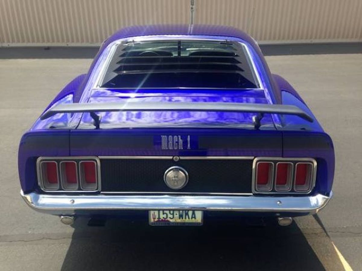 1970 Mustang Mach 1 taillightsThis 1970 Mustang Mach 1 428 is one of the 320 that we found on Craigslist. It’s in excellent condition with a purple paint job, chrome bumpers and the louver and spoiler options. It has spent it’s entire life in the deserts of California and Arizona, which makes it rust free.