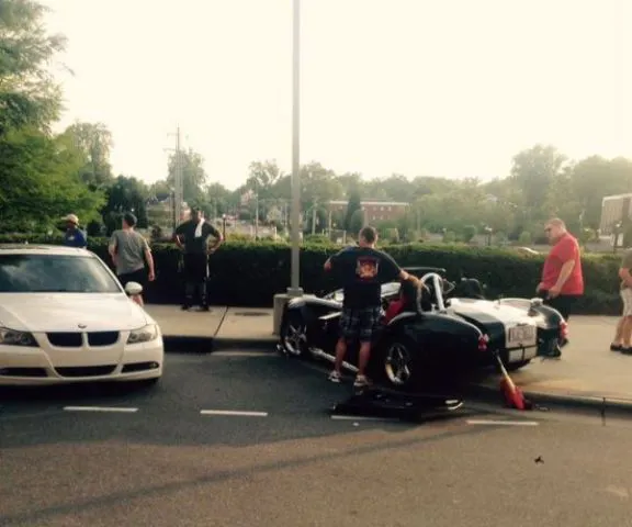 The car shot forward and brushed a BMW before finally crashing into the pole. This caused $5,000 worth of damage to the Cobra and $500 to the BMW. It seems like the Valet wasn’t used to performance and was overwhelmed by the sheer power of the Cobra. The entire front end of the fiberglass body is smashed – bad enough to make you squirm. The crash has revealed what looks to be a 4.6L modular mill that was hidden under the hood.
