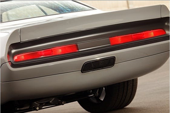This Challenger is about more than just performance, however. Its body has been modified to reflect those exquisite lines you see. In order to achieve the Challenger’s unique look, the bumpers were tucked in, the rear body panel was reshaped to fit custom exhaust tips and taillights without bezels, the drip rails and door handles were shaved, the fiberglass hood was modified and custom-made spoilers were put on the front and rear.