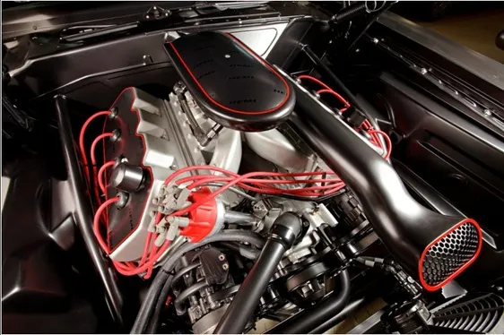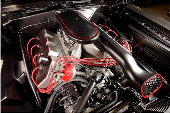 The engine is matted to a Tremec TKO 500 five-speed manual transmission and gets its fuel from an Aeromotive fuel system with a Demon Carburetor and custom tank. The Challenger also features full-length, hand built headers with a 3-inch stainless steel exhaust system.