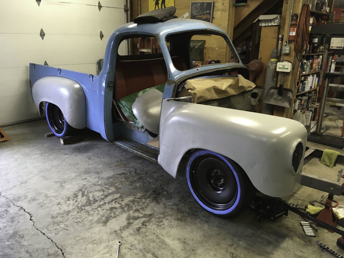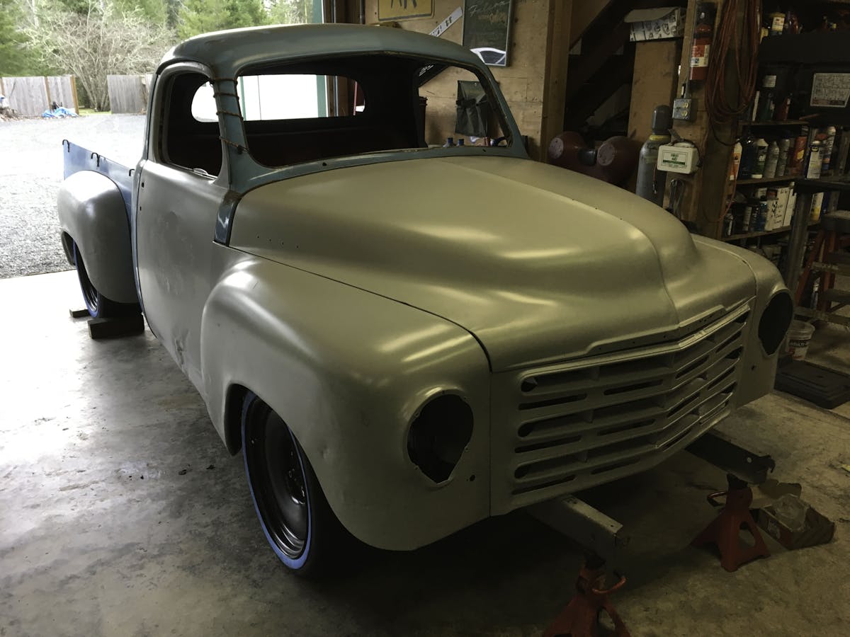“I have had the truck for almost a year,” Steve explained, “and I bought it after I sold the Falcon. I needed something to bang on in the garage.” Steve actually found this on Craigslist a few hours from home and fell in love with its quirky Studebaker style. What caught his eye right away was that he had seen a hotrod Studebaker truck years ago and seeing this brought that memory back to the front of his mind. “20-years ago there was a guy that worked for me at Coca Cola and his dad had a Studebaker truck hotrod,” he explained. “Everyone tells me that Studebaker was so far ahead of their time.”