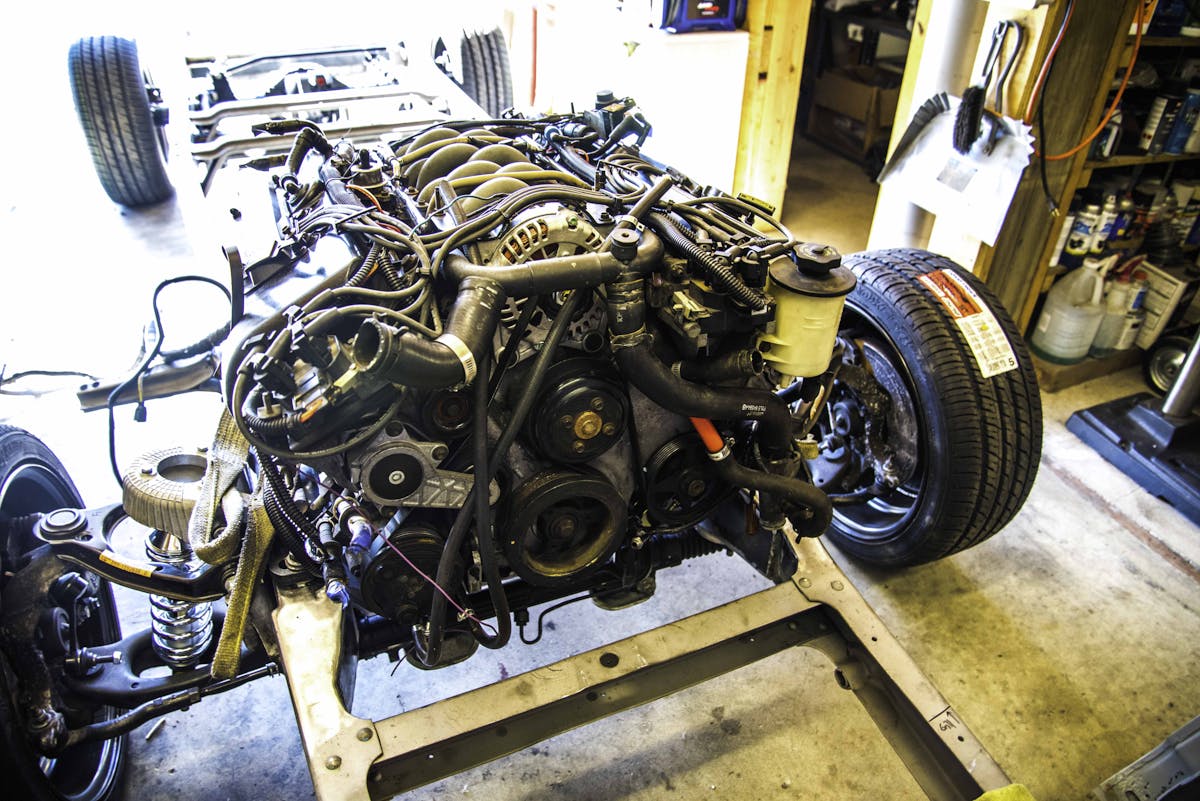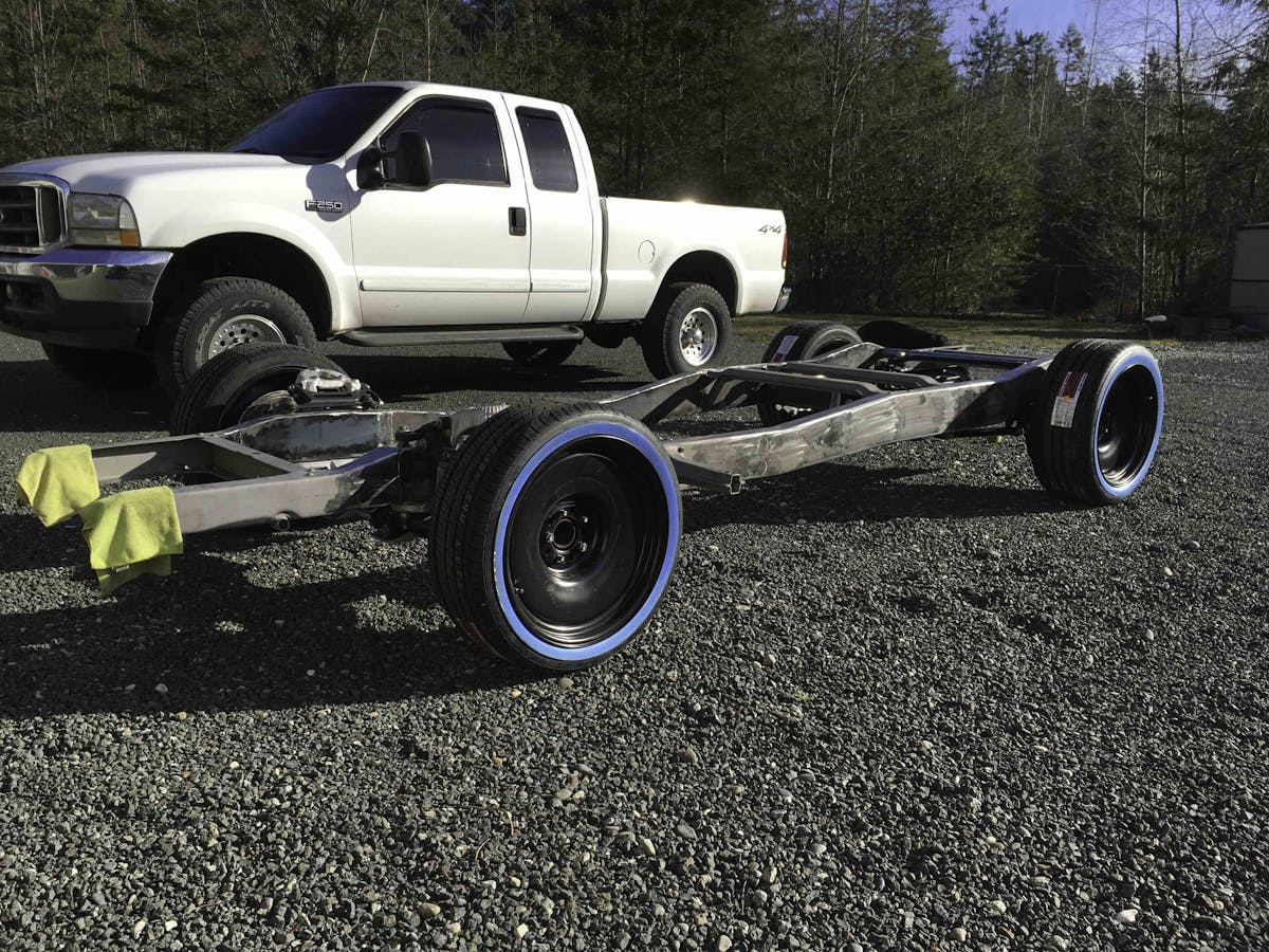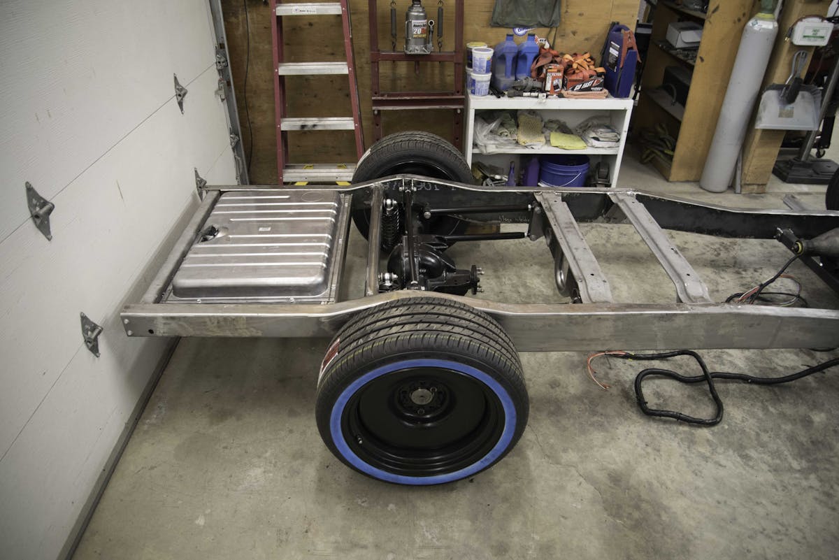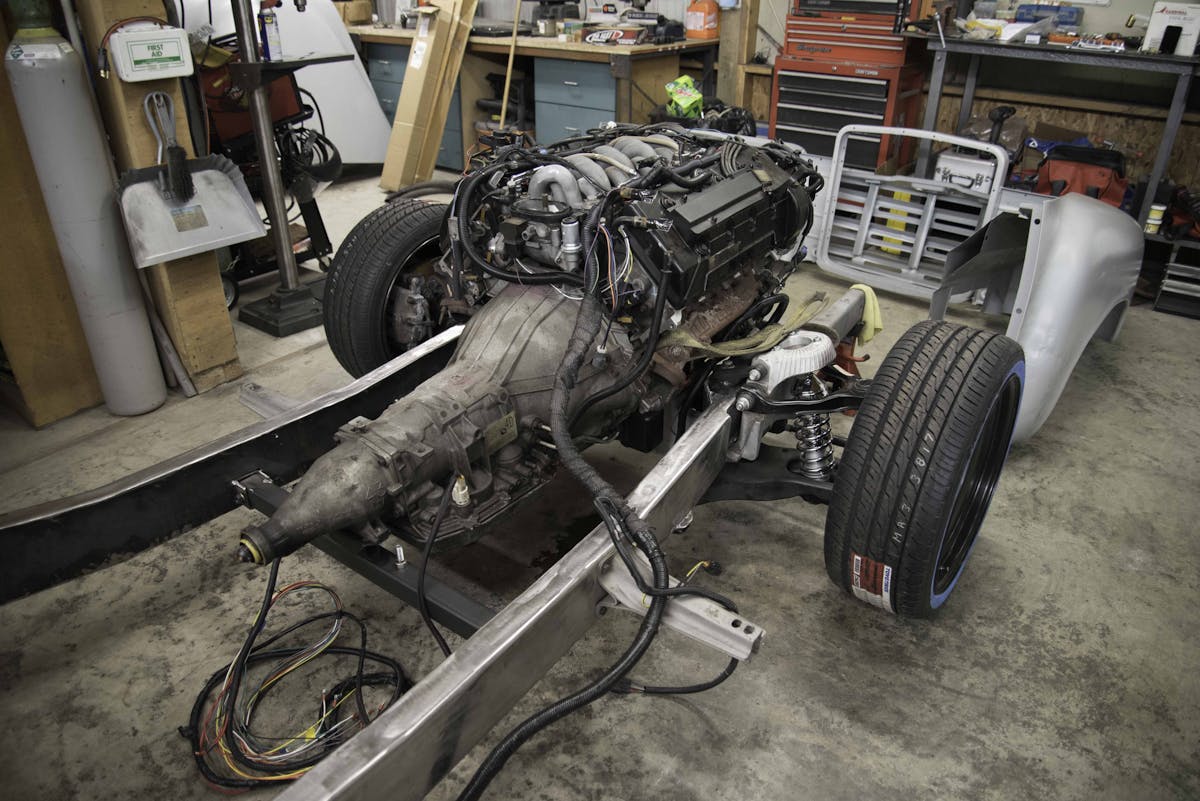 Although he is still in the middle stages of the build, there’s a lot of really, really cool stuff going on here. In the end, it’s going to be powered by a 4.6-liter Ford Nodular engine out of a 1993 Lincoln Mark VIII, a 4R70W 4-speed automatic transmission, an 8.8-inch 3.73:1 geared, posi-traction rear end out of a 1997 Ford Explorer. It also features the front crossmember and suspension system borrowed from a 2003 Ford Crown Victoria Police Intercepter.