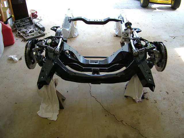 Where the biggest chunk of change was spent was on the entire Detroit Speed catalog—minus their subframe. The Speed Kit III, as it is known, includes a standard subframe modified with Detroit Speed gear, their upper and lower control arms, and Koni coilovers. At the rear, a QUADRAlink rear end helps put the power to the pavement, and back up front, a GM 600 power steering system was made to fit within the confines of the classic muscle car.