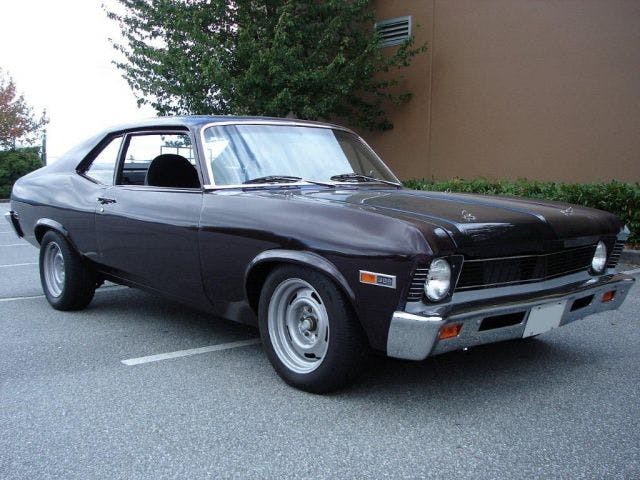 A few of the best modifications done to the Nova are the subtle ones. The front bumper was narrowed and the rear bumper and tail lights come from a ’69 Camaro. Another piece from a ’69 Camaro is the front valance; however this one uses driving lights in place of the original turn signals.