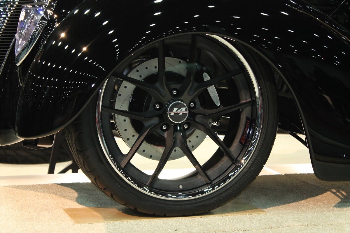 The wheel and tire combination are 17×7 and 18×9, front and rear respectively, by Billet Specialties wrapped in Goodyear F1s.