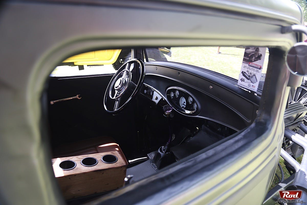 With the truck’s huge decal, this hot rod pays tribute to those that were lost, but never forgotten. Custom fabricated to honor the lost and fallen comrades of war, Carrell’s Ford decides to keep it all black and all business. Up front rests a 350ci Chevy V8, mated to a Turbo 350 automatic transmission.