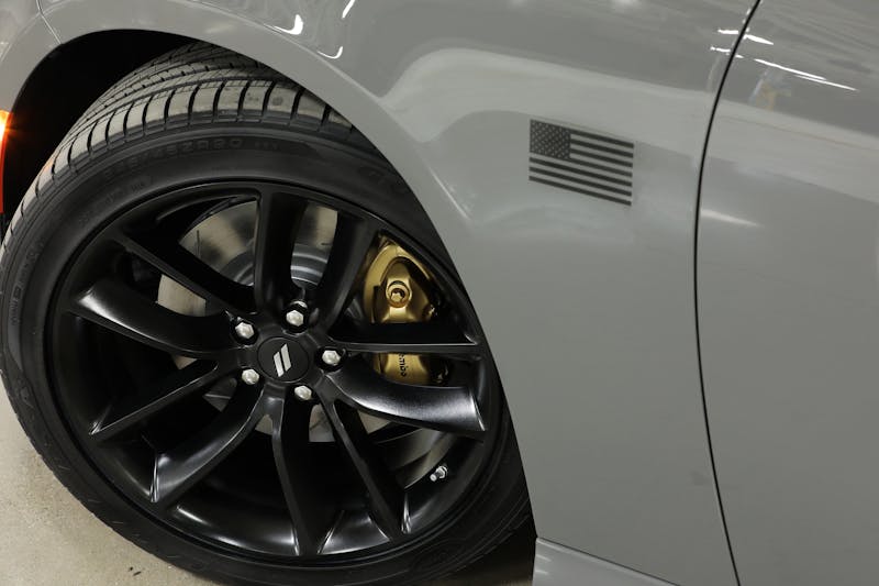 Each special edition car features a unique Satin Black and Silver accent center stripe, Satin Black American Flag fender decals, 20 x 9-inch mid-gloss black wheels and black badging. Bronze four-piston Brembo brake calipers come standard on Challenger R/T Scat Pack and Charger Scat Pack models, and are packaged with the “Performance Handing Group” on GT and R/T models.
