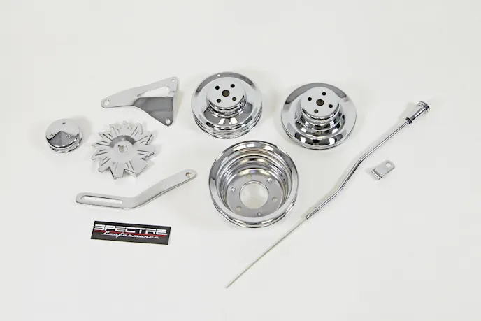 Spectre also has engine accessories designed to work as well as they look good. Fit and finish is high on its list when it comes to QC. Morrow told us, “The company has its own QC people on site in every factory in which the parts are manufactured to make sure our products are up to snuff.” Available accessories to dress out your GM, Ford, and Chrysler engine include chrome engine kits, valve covers, pulleys, throttle body spacers, and timing chain covers. You can also source Spectre for master cylinder covers, engine oil pans and dipsticks, power steering dipsticks, and brackets and latches.