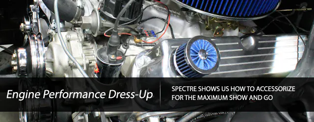We brought in a 1966 Ford Mustang with a 289ci V8 for this article in order to install and inspect several Spectre Performance products. The fact is that the company also offers a broad array of goodies for a wide variety of cars and trucks, including GM, Ford, and Chrysler, as well as all kinds of hot rods and customs. Automotive enthusiasts are not limited to what can be found in auto parts chain stores, as Spectre’s extensive line of products goes far beyond what any store can stock on its shelves.