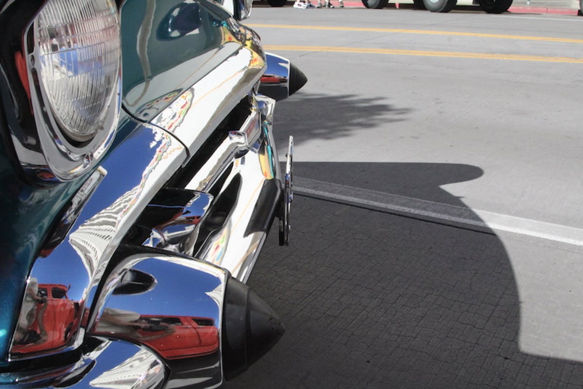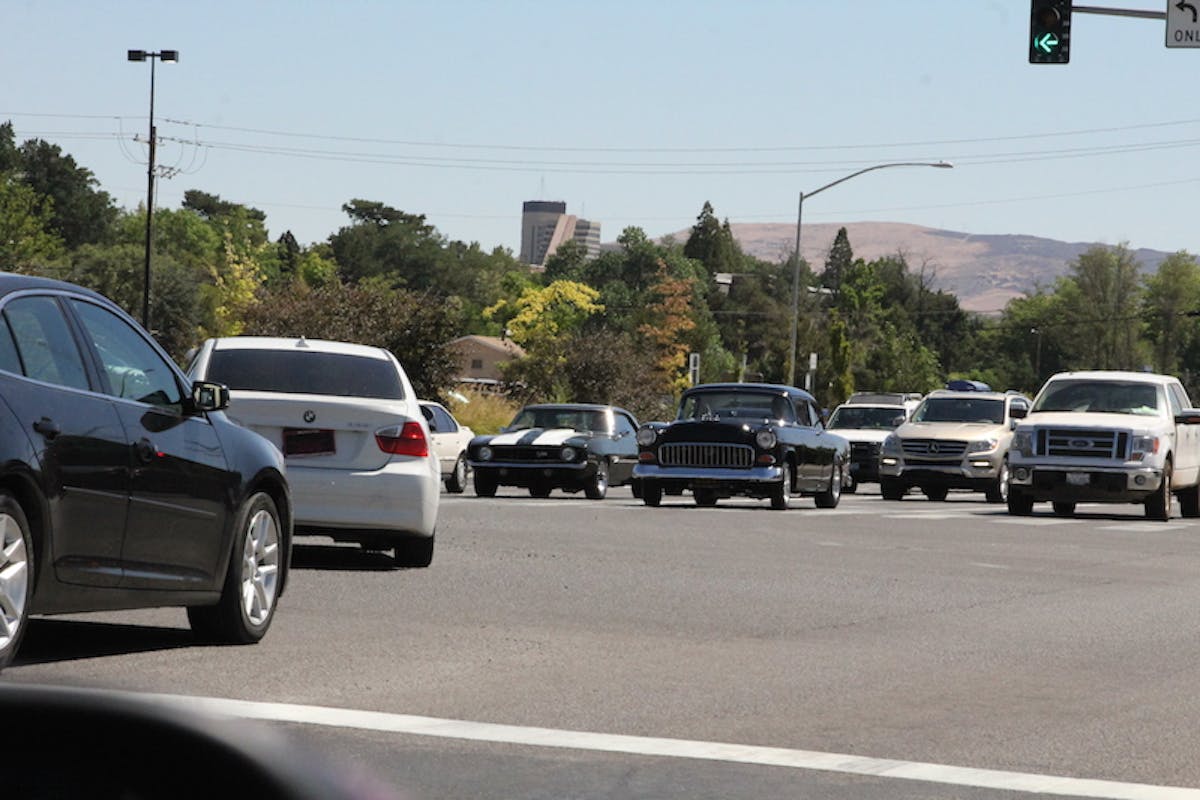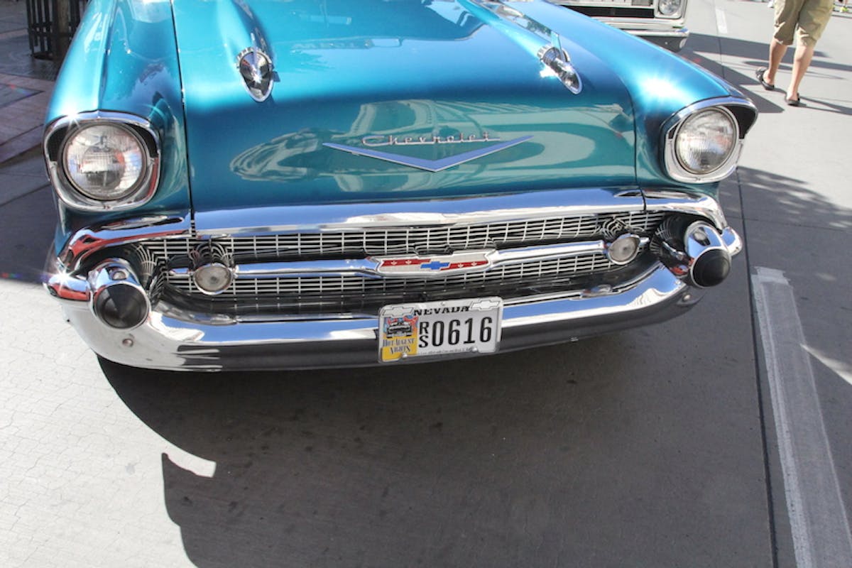 Reno’s Hot August Nights has a fair amount of organized cruises over the eight days, but most of the cars attending the event are drivers and you never know what you are going to see at intersections. Late 60s Camaros line up next to mid-50s Chevys.