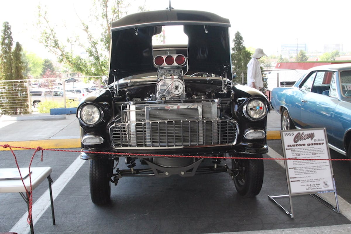 It’s not a real car show unless you have at least one gasser. This year we found Ron and Lucy Moyer’s unique custom 1955 Chevy BelAir gasser on the premises. Typically gassers have a solid front axle that gives it a lifted front end stance. Moyer’s gasser was built with a completely custom front suspension that is unlike any other gasser that we’ve seen so far. Custom control arms with drop spindles and QA1 coilover shocks complete the design.