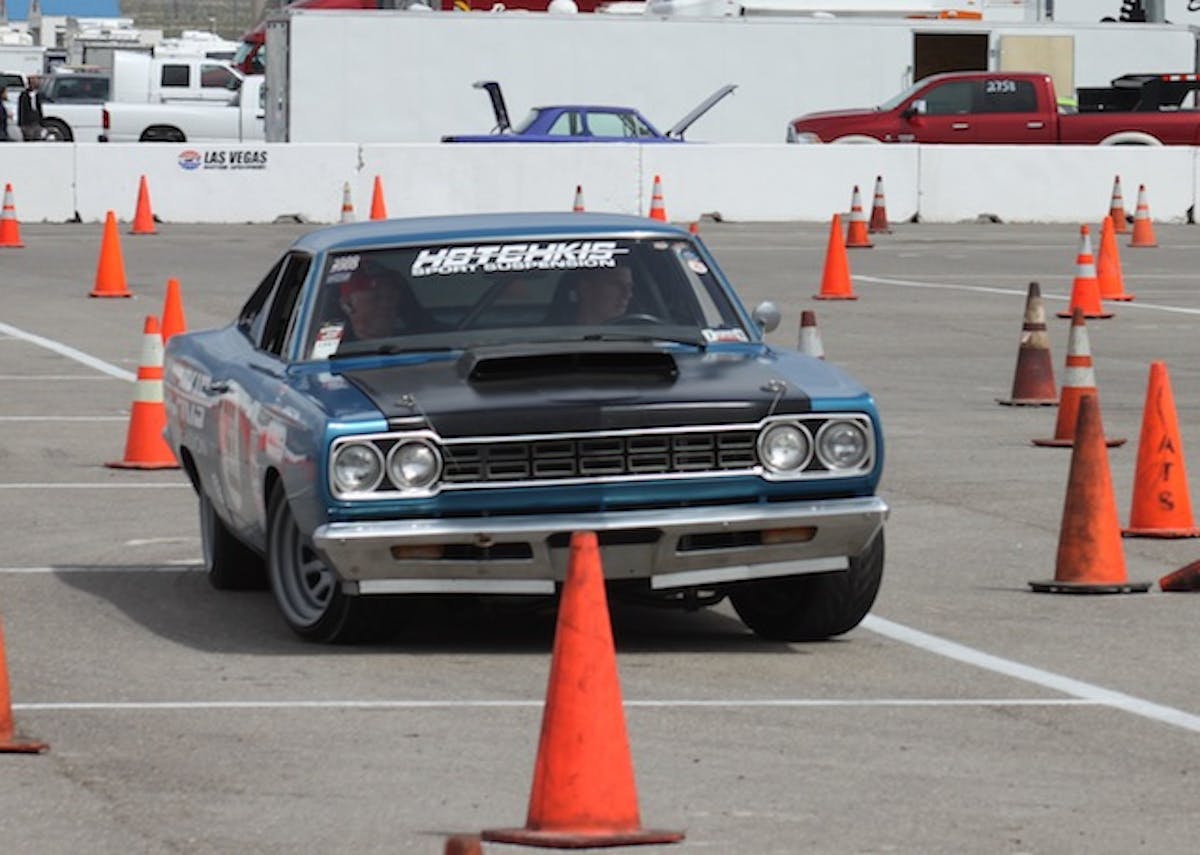 What they didn’t figure on was how brutally these guys would hammer on the cars in question. I could see the sweat beading on Dan Weishaar’s forehead when looking out on a field of 16 magazine editors, all champing at the bit to drive his B5 Blue ’68 Plymouth Road Runner. Unlike RideTech’s meticulously-restomodded ’69 fastback Mustang or the internationally-recognized Optima/One Lap ’67 Camaro, Weishaar’s ‘Runner was his car, not Hotchkis’ official car.