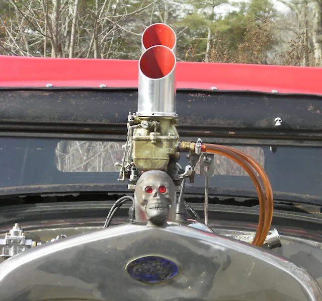 This particular car is definitely not one that was thrown together for mere profit. It has the low stance and tall whites over the red steelies that you’ve come to expect of a rat rod, but that’s where the similarities end.