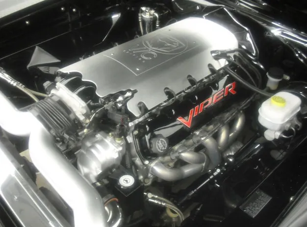 The initial plan while building the car was to simply drop the Viper’s V-10 under the hood, but one thing led to another and in the end a new rear frame and floors were build around an entire Viper drivetrain. The V-10 itself was warmed over as well.