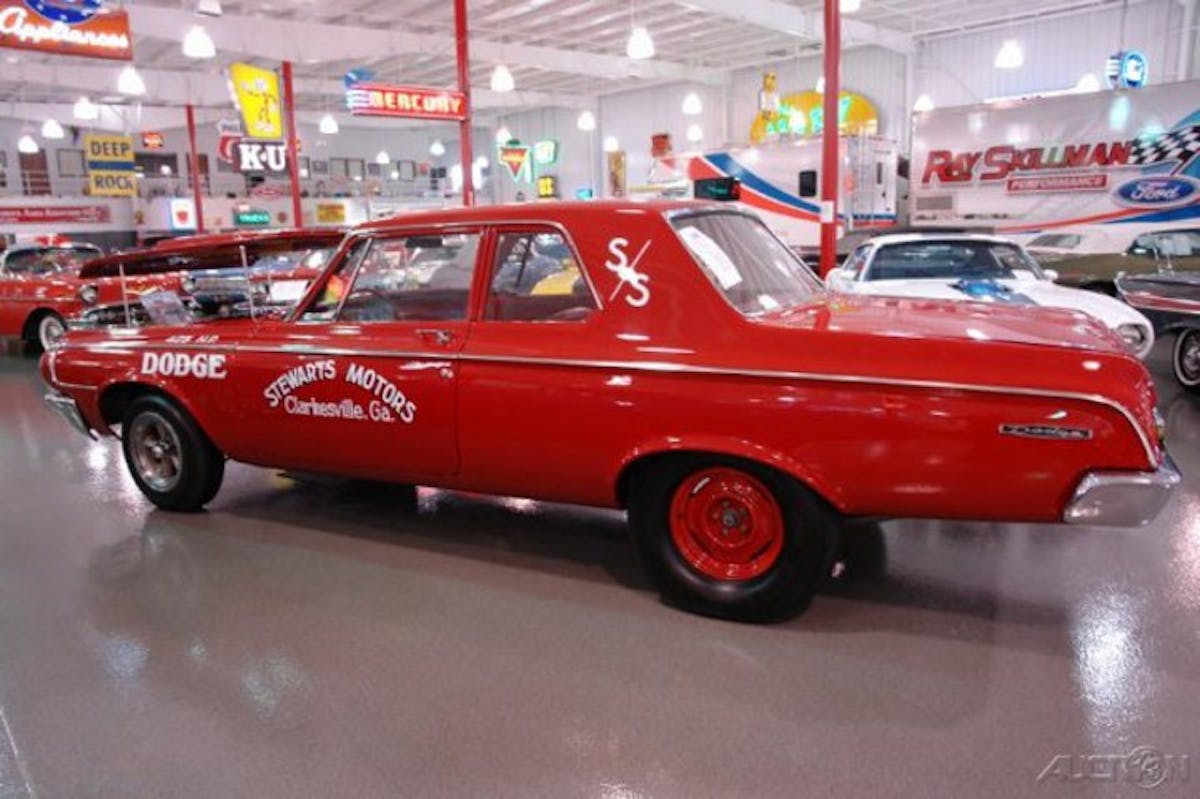 It’s an ultra-rare 1964 Dodge 330 Hemi Lightweight that is fully documented and has undergone and extensive restoration. The “Lightweight” 330s were called such because of their aluminum hood, doors, front fenders, and radiator support – very trick parts for the day, and the fact that they were produced by the factory made them just all the more desirable. The 425 horsepower rated 426 Hemi is still mated to a 4-speed manual trans just the way it came from Dodge, and it’s believed to be one of just 61 Hemi-equipped factory built lightweight drag racers that were built by Dodge in 1964.