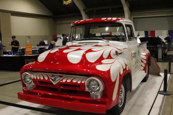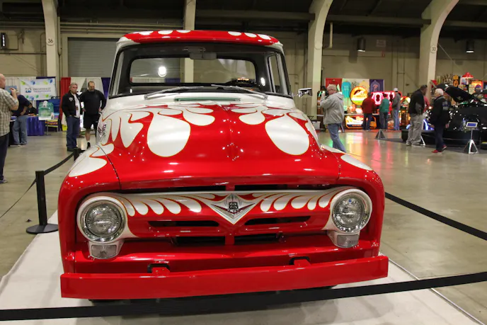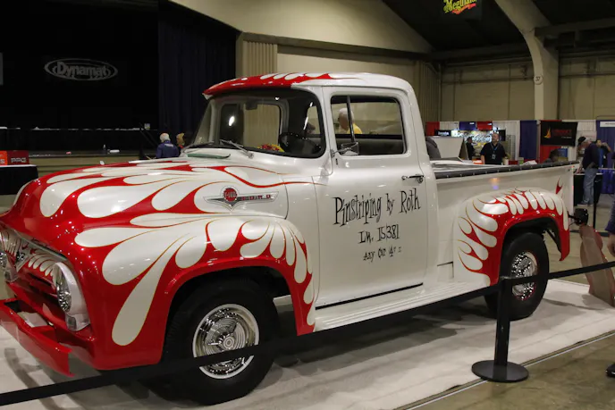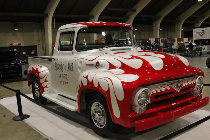 Last August the crew at Galpin Auto Sports announced that they had found the lost 1956 Ford F-100 pickup of Ed “Big Daddy” Roth. The pickup, which was noteworthy because it was the first custom truck done by Roth. Originally used as advertising for Roth’s pin-striping business, the truck featured a Packard V-8 engine. Roth completed the look with his signature red flame pinstripes and a mural on the tonneau cover along with a host of chrome-plated parts.