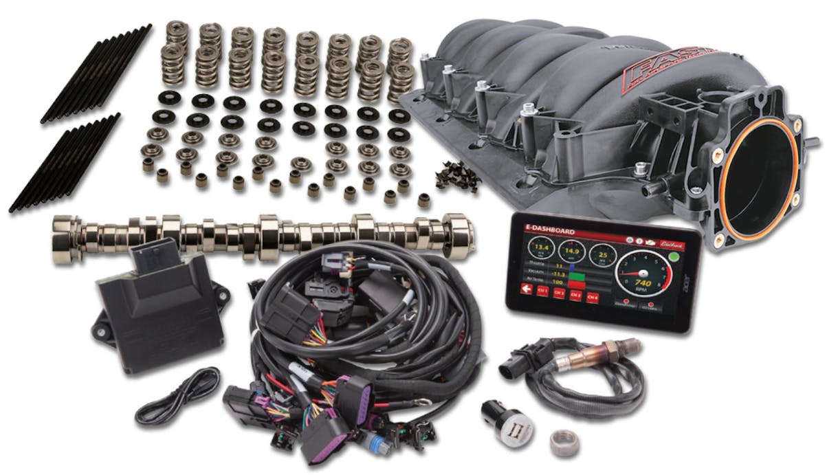 - These kits feature Edelbrock’s Pro-Flo 4 throttle body EFI. Also included is a touch-screen tablet, loaded with the Edelbrock E-Tuner software. This allows you to fine-tune your system. Make sure you choose a kit with the crank sensor harness you need — 24x for a Gen III or 58x for a Gen IV. If you are planning to run boost, you will need to grab Edelbrock’s two-bar MAP sensor (P/N 3542).