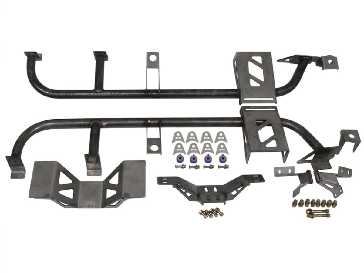 The A-body kits also feature fully welded tubular side rails and an adjustable transmission crossmember – but also come along with laser-cut boxing plates, stainless-steel hardware, and body mount reinforcement plates specifically designed for Energy Suspension bushings.