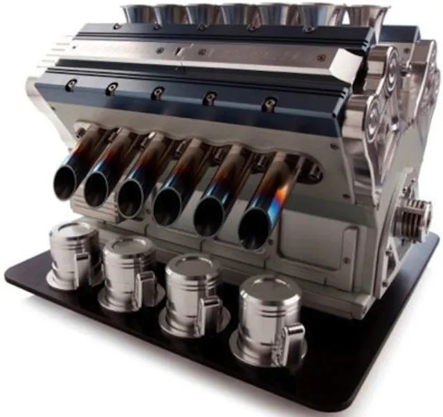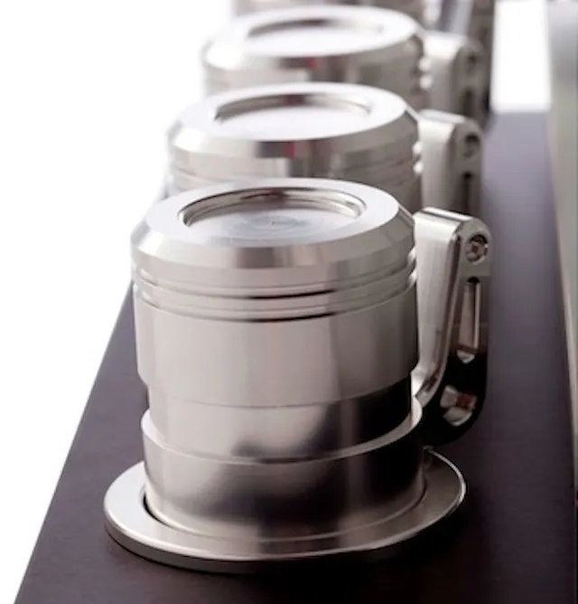 An engine replica designed to simulate the Grand Prix racing mills specific to the ’90s, Espresso Veloce’s V12 coffee maker is about half the size of the 3-liter machine on which it’s based, but with a limited production run of 500 units and a construction made up of aluminum, magnesium and titanium, the Veloce does not promise to be a cheap toy.