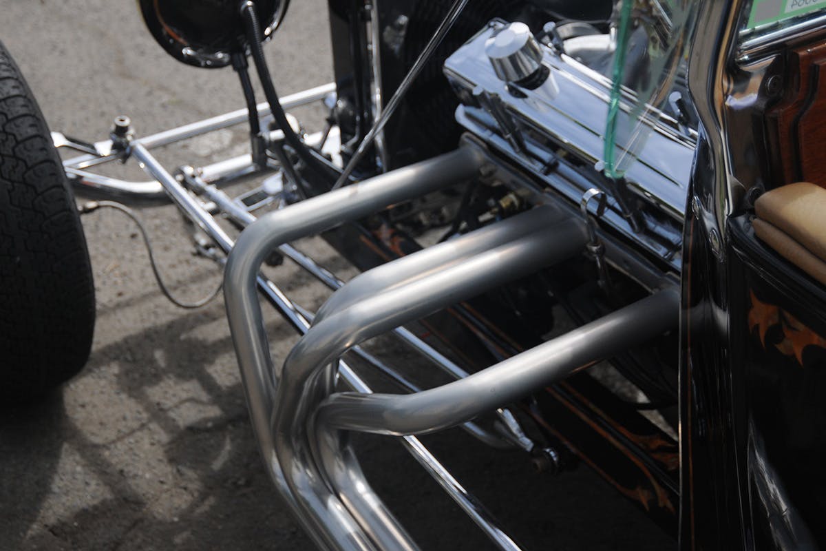 On the other end of the spectrum was a 1948 Packard belonging to Craig and Susan Sherman of Castaic, California. With all the styling of iconic lead sleds, the Sherman’s ’48 is named the “Merc Eater.” Near the driver’s side rear of the Packard was a display board with pictures documenting the progress of the vehicle from inception to completion.