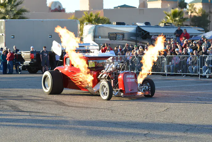 Show and shines will take place daily at the famous CasaBlanca resort and Oasis parking lots, while open header cruises will begin at the corner of Mesquite Boulevard and Pulsipher Lane on Friday and Saturday at noon sharp. And, this year only, many National Hot Rod Association racers from the past will attend to show off their nostalgic drag cars on Friday and Saturday evenings.