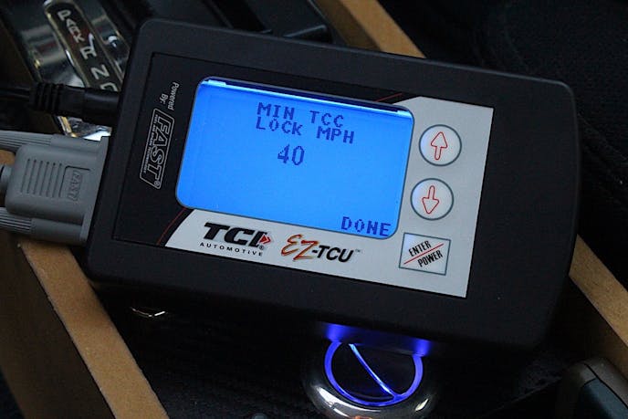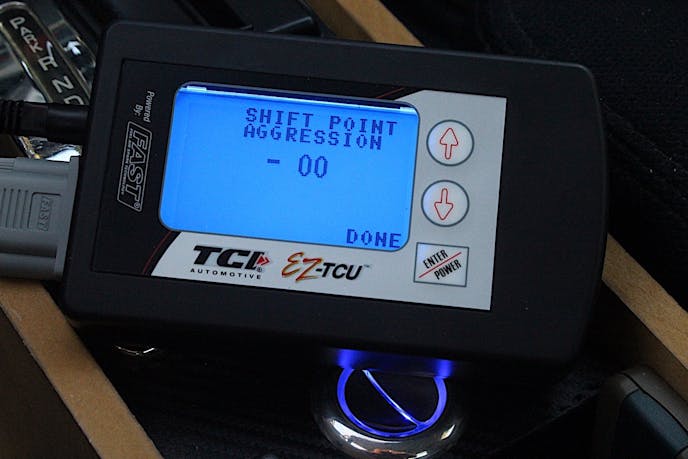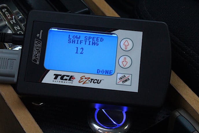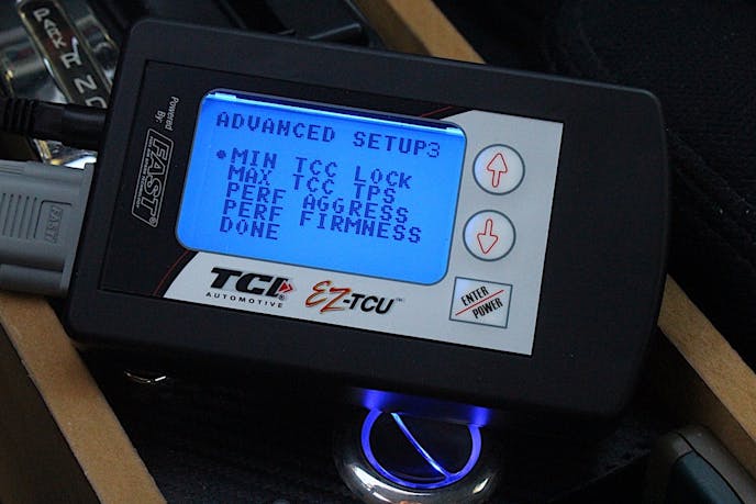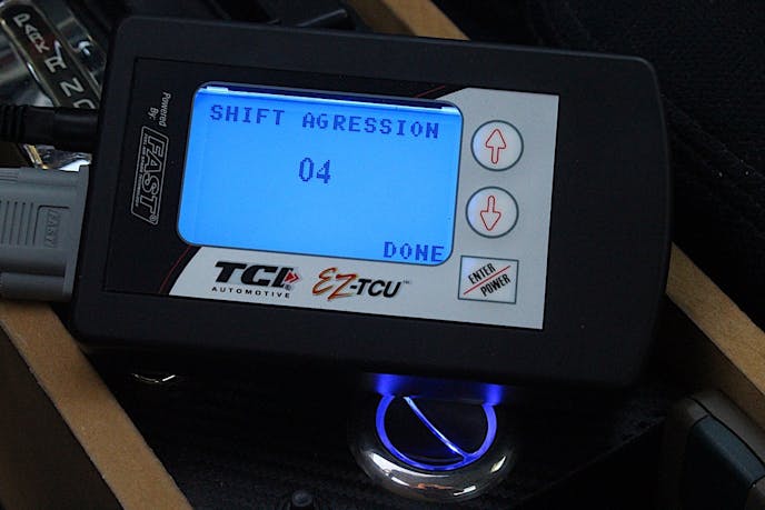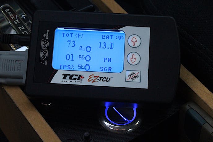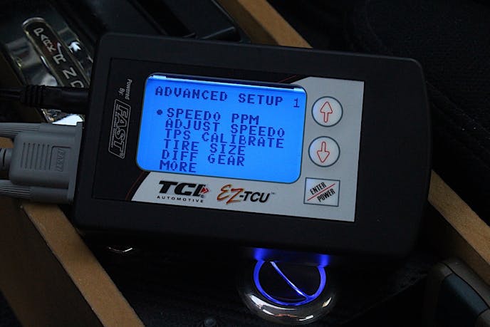 We installed the EZ-TCU when we upgraded Project Track Attack recently. We had installed a 4L60E overdrive transmission and needed a better way to control how our transmission operates. After the initial wiring and ECM installation, it was simply a matter of turning the ignition on and plugging the included handheld into the ECM and a 12-volt (cigarette lighter) source. The initial setup consists of simple questions about your vehicle, and the rest is already programmed into the EZ-TCU ECM.