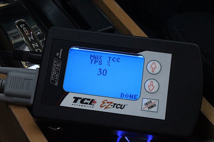 We noticed with some settings, the numbers didn’t start at the same point as others, this is a failsafe for the controller. TCI Automotive’s Will Vance told us, “Some scales are set to take you to a negative reading to help reduce shift strategy. However, all values are a percentage of what we recommend, as you can’t go too far one way or the other and fear hurting the transmission.”