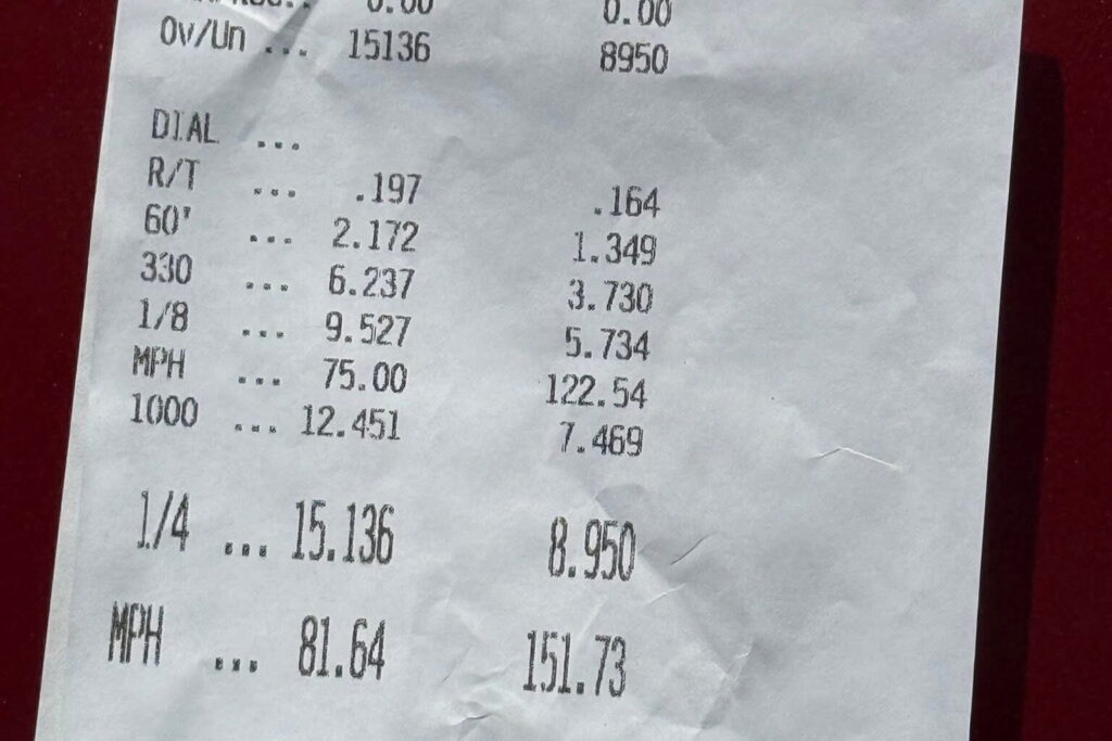 Driven by Jordan Pennington, the Vette put down an insane 1.349 60-ft time on untreated reproduction bias ply tires, then crossed the finish line at a nose-up 8.95 at 151.73 mph.