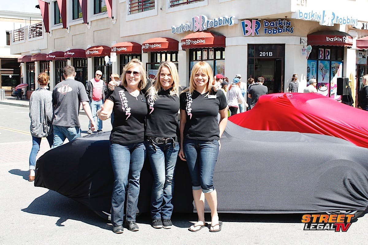 The scene stayed pretty busy most of the day, with live music from the Fabulous Nomads, a DJ for tunes when the band took a break, and a couple of vendors at center court. The highlight of the day came at about mid-day when Dave Smith and crew rolled out a couple of nicely covered up cars to the middle of the intersection. The crowd gathered and anticipated the unveiling of two special builds, each of which we would have loved to take home.