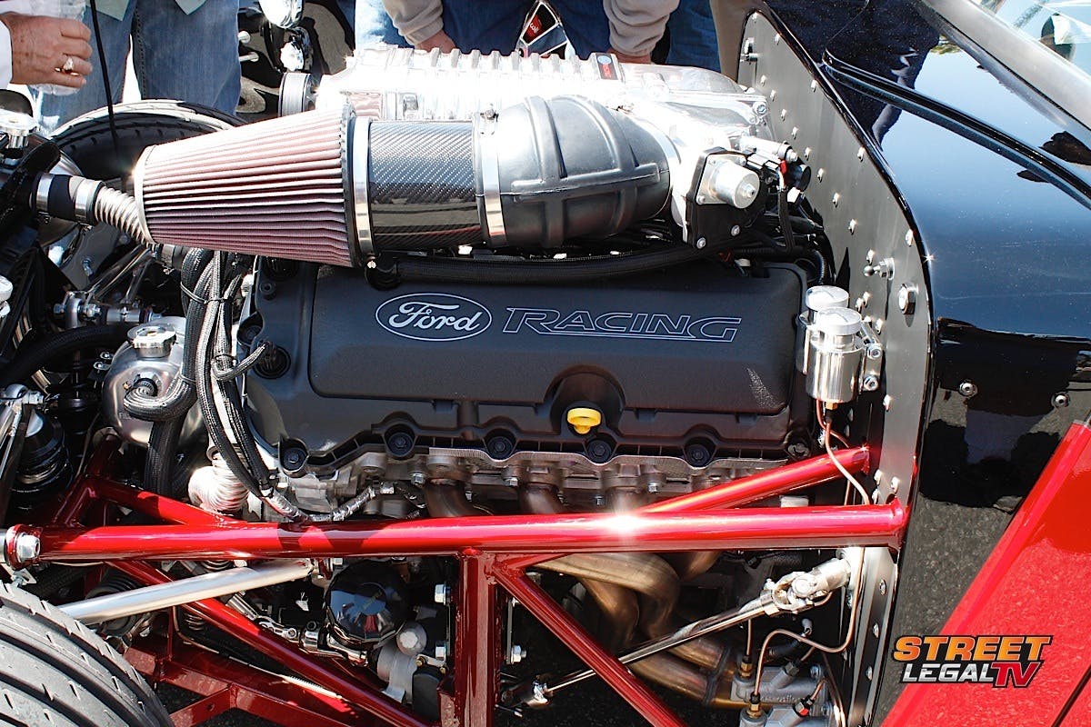 Motivating the special edition 33 is Fords Aluminator base 5.0 Coyote engine producing 625 crank horsepower, thanks to the polished Whipple supercharger sitting on top. With the FFR race-proven 3-link suspension, keeping it stable is a set of Koni 8012 double-adjustable shocks all around. The supercharged Ford will get it up to speed in a hurry, and bringing the beast to a halt will be a set of Wilwood disc brakes. The frame and interior are all custom, and the custom gauges will also have the serial number of the car as well as the Hot Rod logo.