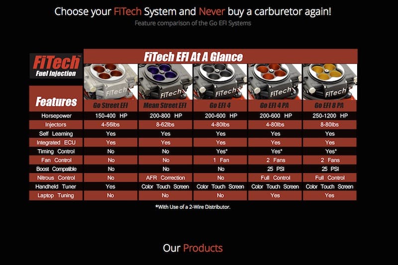 In addition to the product descriptions and comparisons to help enthusiasts figure out what system is best for their application, the new FiTech website offers a look at the company’s products in the media as well as testimonials from engine building experts. In depth articles that compare EFI systems to carburetors in a head-to-head battle to the latest news in the industry are displayed on the opening page.