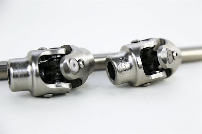 • Dimpling the Steering Shaft – The most common error made when installing a universal joint is not dimpling the steering shaft. The ends of the set screws provided with the universal joints have a cupped point and do not sit flush on a flat surface. If the shaft is not dimpled, the set screw may feel tight, but will eventually loosen itself with use and will result in play in your steering system. By dimpling the shaft, you increase the clamping force of the set screw, allowing it to “bite” into the surface and creating a tight fit between the universal joint and steering shaft.