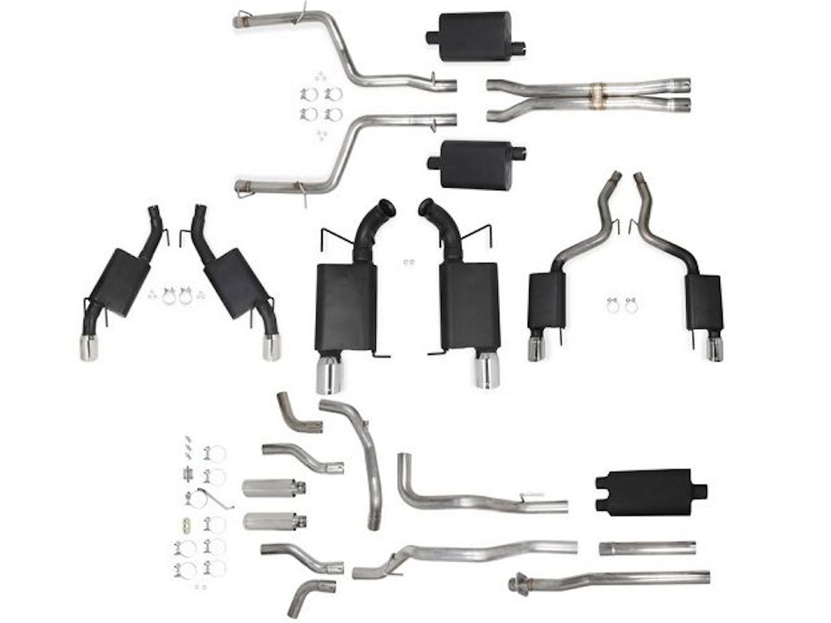 Stainless Flowtech cat-back exhaust systems are now available for 5.7L 2009-14 Dodge Challenger R/Ts and 2009-14 Ford F-150 trucks of all wheelbases and engine types. The Challenger system is 2.5 inches, and the F-150 system features a 3-inch into dual 2.5-inch design that’s compatible with all three popular engine types – 4.6L, 5.0L, and 5.4L. Both the Challenger and the F-150 systems are made of 409 stainless steel, come complete with high-flow chambered mufflers, and feature quality welds for strength, extra longevity, great looks and optimum tube geometry for ease of installation. The Challenger exhaust is specially designed to be a perfect fit for factory bumper-mounted exhaust tips.