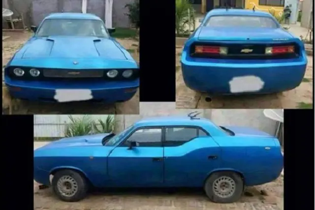 Alas, most people outside of North America simply don’t have access to these marvelous machines, but that doesn’t stop them from building “tributes”, to be generous. This particular “tribute” to the Dodge Challenger found by Carscoops has two too-many doors and a Chevy bowtie badge for some inexplicable reason…but as far as budget tributes go? This one’s not so bad…at least from the front, that is.