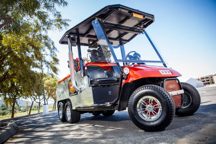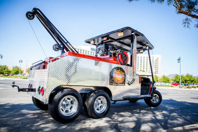 Franken-Truck is a recycled service vehicle that brought back to life parts from other vehicles that would have ended up in the landfill, according to Ciara Green, a representative at Pechanga. The auto shop used the obvious components from out-of-service golf carts and passenger carts, as well as some parts from a Pontiac Grand Am that had played its last hand as a security patrol car at the casino.