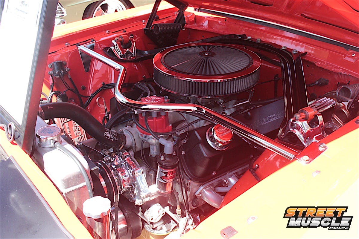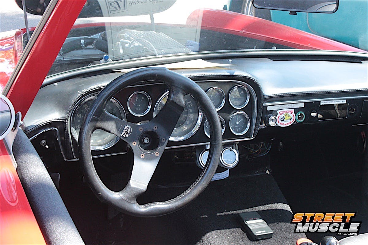 The spartan dash is highlighted by a custom billet steering wheel and a period-style radio with not much else to look at, save for the sliding controls for the ventilation. We’d say when it comes to cookie-cutter Novas, Pete colored outside the lines a little with this one.