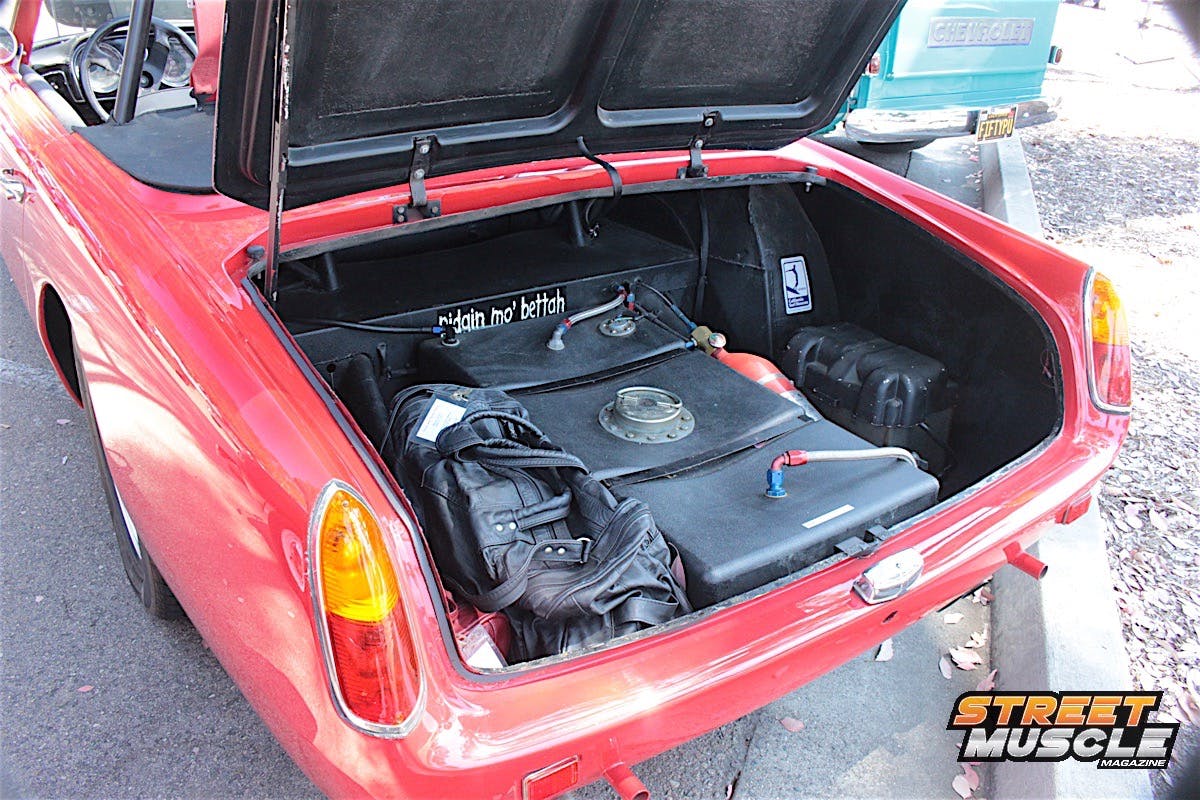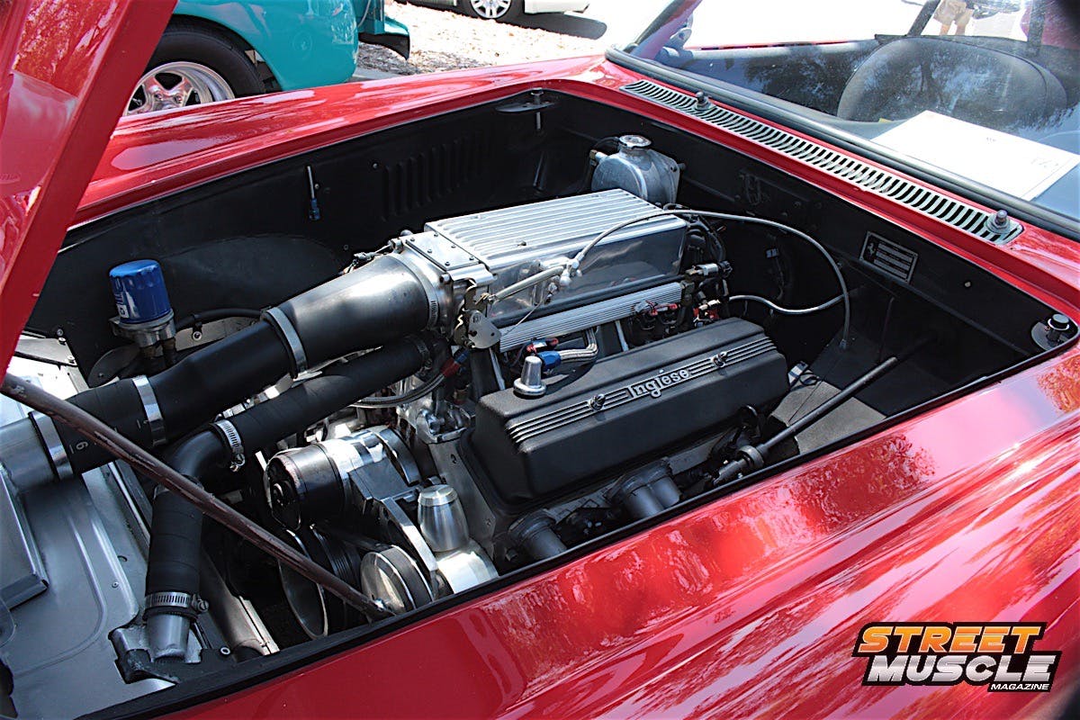 Owner Ray Garner has custom touches all around the car, including spoilers, modern emblems, and carbon fiber panels in the interior and engine bay. If the bright green color didn’t get you, there was something else that drew people in.