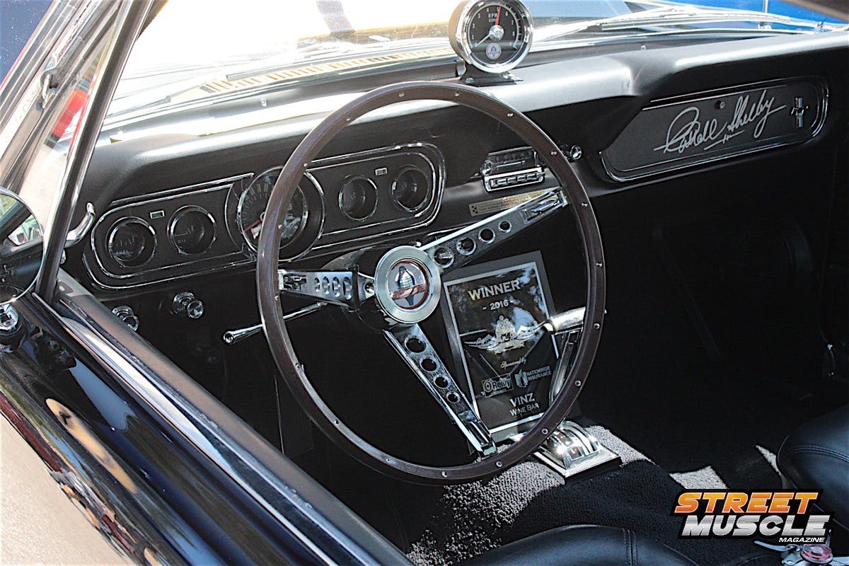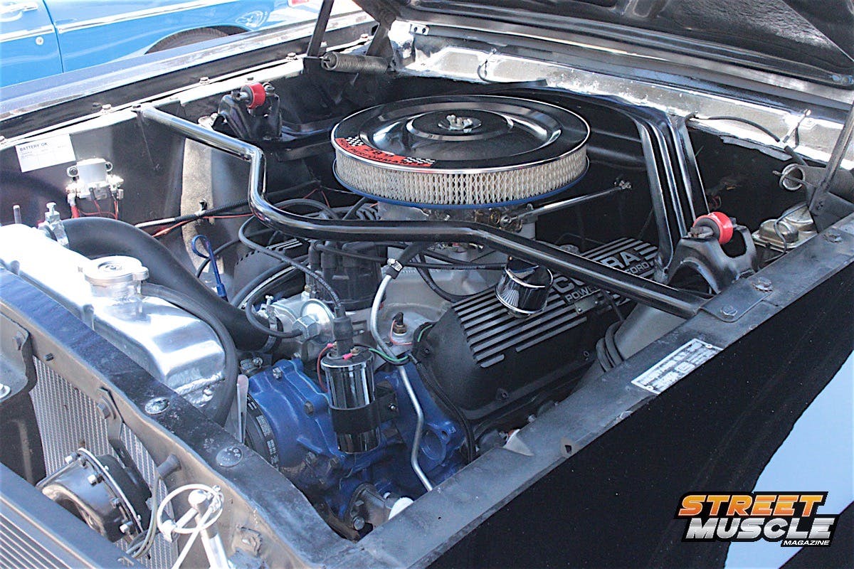 The spartan dash is highlighted by a custom billet steering wheel and a period-style radio with not much else to look at, save for the sliding controls for the ventilation. We’d say when it comes to cookie-cutter Novas, Pete colored outside the lines a little with this one.
