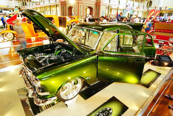 It turns out that not everything was flooded in Australia last month as the annual Victorian Hot Rod Show was held on time again! The show is held in Melbourne’s beautiful Exhibition Building, and the type of muscle cars, hot rods, and custom bikes there were all as wild as can be. In addition, the majority of the show cars have all been painted beyond belief in true “mild to wild” fashion. As with all major car shows there were many vendors present and made it an enjoyable show for those with a car there, those building cars, and onlookers as well.