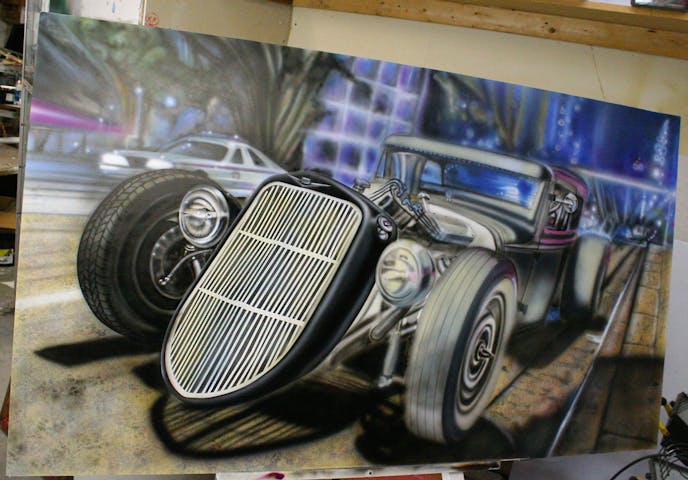 In addition to custom automotive renderings, Zuyus uses his artistic talents to create custom screen printed T-shirts, race team shirts, a number of unique Motor Head brand apparel items, race car graphics, full-body wraps, airbrushed and vinyl signs, helmet graphics, wall murals, company logos, website designs, and the list goes on and on. That’s right, everything you could ever want design wise for your shop, race team, company, and garage can be sourced through one amazing artist!