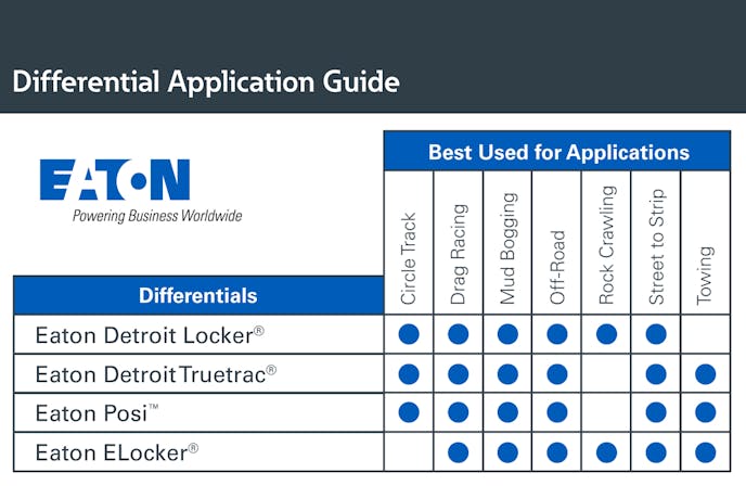 Last fall we hit up the crew at Eaton Performance to get the low down on four of the various differentials it offers, specifically limited slip and locking differentials. If you’ve ever seen the one-tire fryers laying down a single strip while the other rear tire is merely along for the ride, then you know what happens with a one-legger: traction fails.