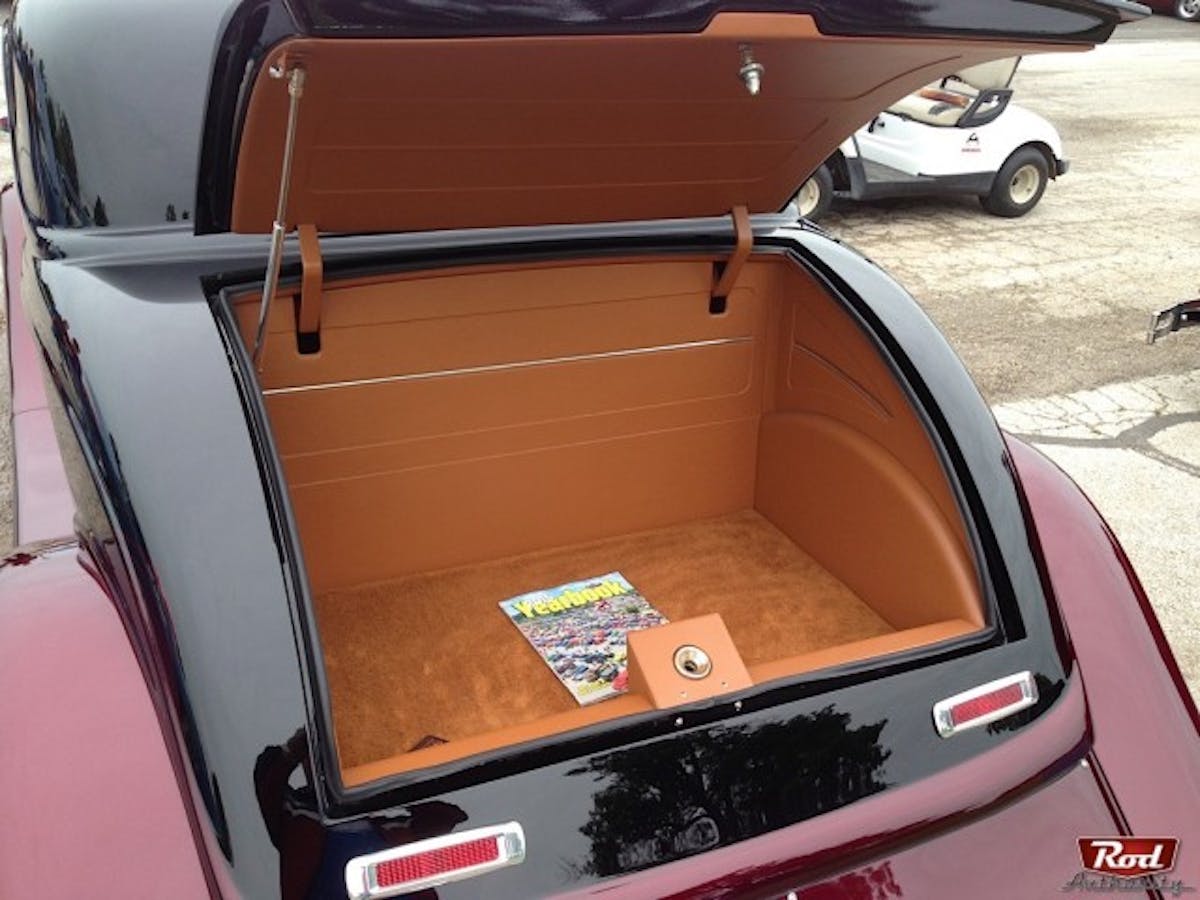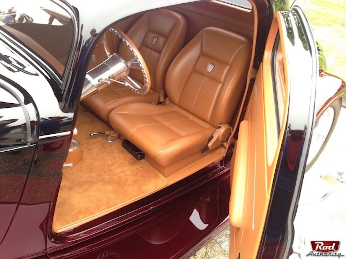 The panels inside the Ford coupe are all custom, made from aluminum and leather and customized by RPL Customs in Rowlett, Texas. Too clean and oh so mean, this Ford Coupe won the “Outstanding Use of Color” award at the 2015 Mid-America Street Rod Nationals.
