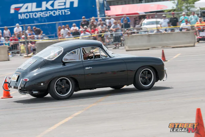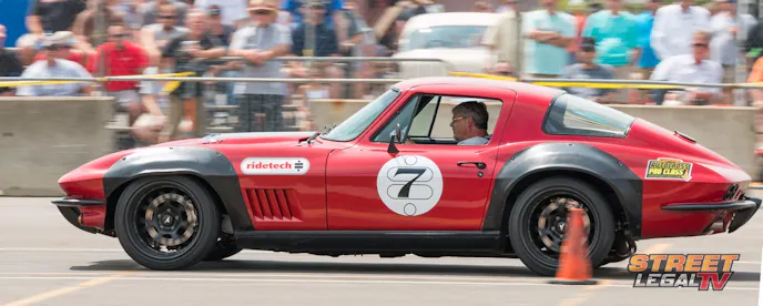 Bret Voelkel jumped behind the wheel of the “Barn Find” 1964 Corvette and decided to show everybody in at the Ohio Expo Center you don’t need giant horsepower or loads of tire to get around the autocross quickly. The Barn Find would be considered seriously outgunned by most for PRO class competition with the small tires and power plant, but the RideTech suspension mixed with Voelkel’s driving closes that gap.