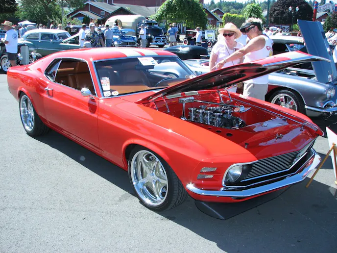 Dennis DeCamp’s 1970 Ford Mustang has been named Goodguys 2010 Detroit Speed Muscle Machine of the Year. The red Mustang with superior fit and finish was spotted sliding around several autocrosses this year and was selected as a finalist at the Orange County Get-Together back in May. It’s the second Terrific 12 award for DeCamp in three years. In 2007, his Ferrari-influenced 1932 Ford took home the Classic Instruments Street Rod of the Year title in Columbus.