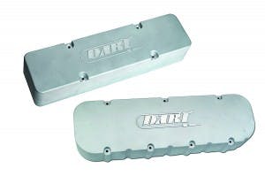 Dart’s new cast aluminum valve cover design for big block and small-block Chevrolet engines features an inverted mounting flange that allows the side walls to be moved outward, which increases clearance for long-ratio rocker arms and racing valve train components. Dart’s cast aluminum construction provides extremely rigid rails for improved sealing and durability. The all-new foundry tooling produces cleaner, more attractive castings with a contrasting, raised, machined Dart logo that dresses up the engine. These new inverted, flange valve covers offer show car looks with race engine performance design and are cast and machined in the USA. Call 248-362-1188 or go online to www.dartheads.com for more information.