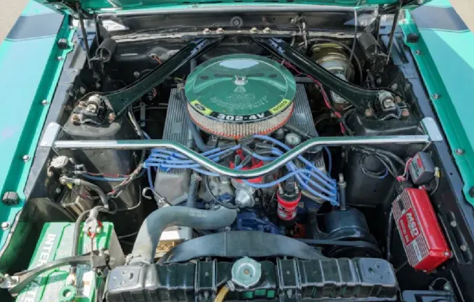 Finished in Grabber Green over black vinyl, this Mustang features a 302ci V8 engine with a four-speed manual transmission. The engine, which has a factory rating of 290 horsepower, was rebuilt in 1986, and the four-barrel carburetor was replaced in 2018.